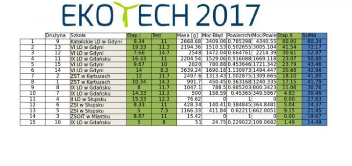 EKOTECH 2017 – oficjalne wyniki